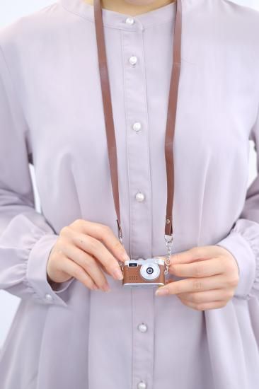 本体レザーと同色のネックストラップと、キーホルダーのようにハンドバッグなどに取り付け可能なキーチャームが付属しています。いつでもどこでも、かわいいアクセサリーのように身に付けてお楽しみいただけます。